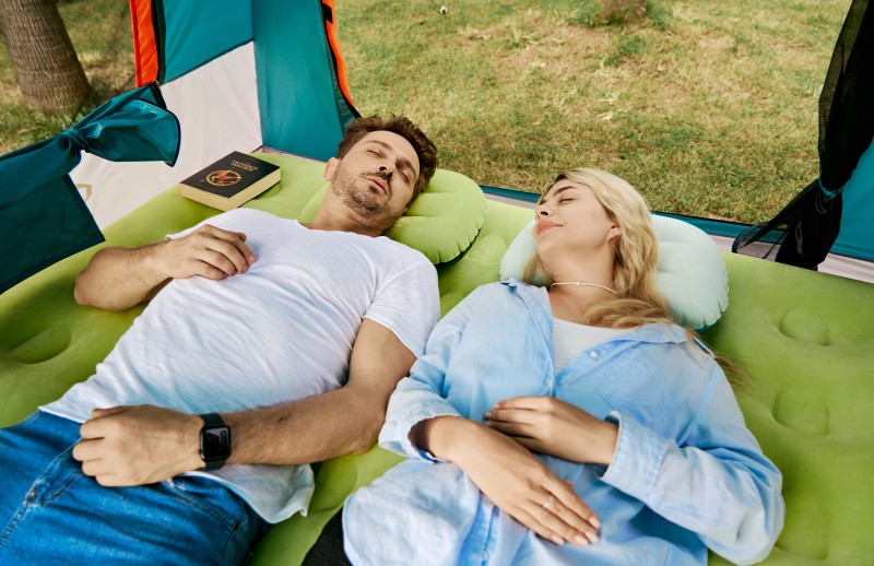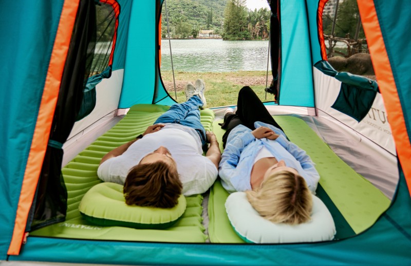 The tent inflates into shape with one click, freeing your hands and eliminating the tedious tent setup process. Its scientific "X"-shaped boneless inflatable beams, made of double-layer thickened durable TPU material, provide the tent with high-strength support and stability.