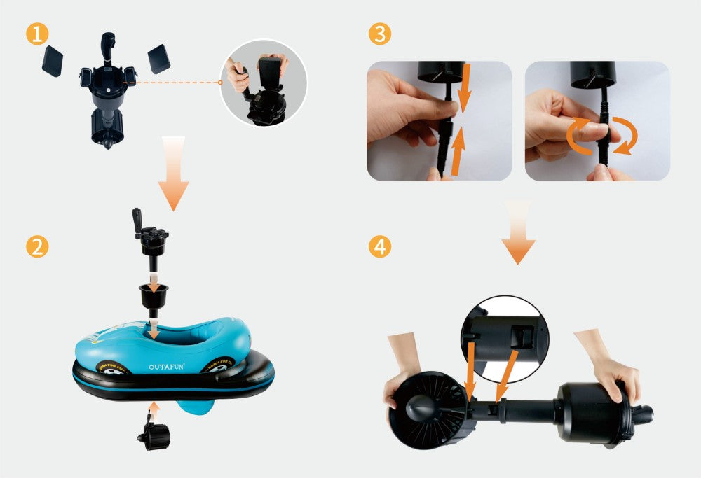 2. Assemble the three-section thruster body sequentially, then insert the completed assembly through the reserved opening/hole of the inflatable product.
